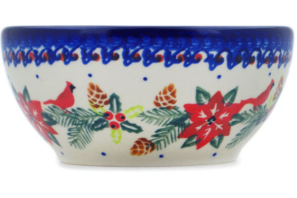 This Cardinal's Home 5" Bowl was handmade and hand decorated in Boleslawiec, Poland by skilled artisans according to old traditional methods. This is a Polish pottery Signature Unikat, which means that it has been hand painted with both sponges and brushes and it is signed by the artist who painted it. Unikat pieces are the most intricate works of art. Larger Unikat items take hours of very careful work to finish. This Polish stoneware is microwave, dishwasher, freezer, and oven safe up to 480°F. It does not contain lead or cadmium. It is part of the Cardinal's Home Collection.