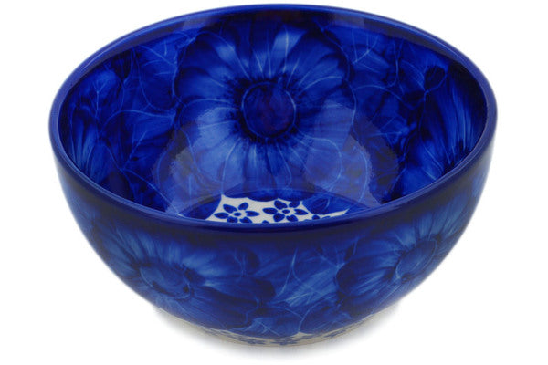 This Divine Cobalt 6" Bowl was handmade and hand decorated in Boleslawiec, Poland by skilled artisans according to old traditional methods. This is a Polish pottery Signature Unikat, which means that it has been hand painted with both sponges and brushes and it is signed by the artist who painted it. Unikat pieces are the most intricate works of art. Larger Unikat items take hours of very careful work to finish. This Polish stoneware is microwave, dishwasher, freezer, and oven safe up to 480°F. It does not contain lead or cadmium. It is part of the Divine Cobalt Collection.