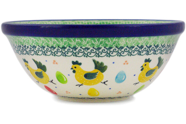 This Egg Hunt 6" Bowl was handmade and hand decorated in Boleslawiec, Poland by skilled artisans according to old traditional methods. This Polish stoneware is microwave, dishwasher, freezer, and oven safe up to 480°F. It does not contain lead or cadmium. It is part of the Egg Hunt Collection.