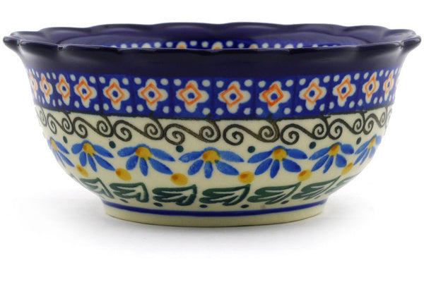 This Floral Medley 6" Scalloped Bowl was handmade and hand decorated in Boleslawiec, Poland by skilled artisans according to old traditional methods. This Polish stoneware is microwave, dishwasher, freezer, and oven safe up to 480°F. It does not contain lead or cadmium. It is part of the Floral Medley Collection.