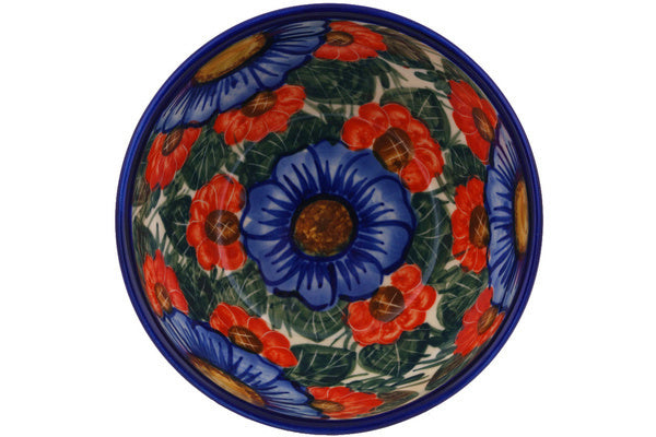 This Flowers In Bloom 6" Bowl was handmade and hand decorated in Boleslawiec, Poland by skilled artisans according to old traditional methods. This is a Polish pottery Signature Unikat, which means that it has been hand painted with both sponges and brushes and it is signed by the artist who painted it. Unikat pieces are the most intricate works of art. Larger Unikat items take hours of very careful work to finish. This Polish stoneware is microwave, dishwasher, freezer, and oven safe up to 480°F. It does not contain lead or cadmium. It is part of the Flowers In Bloom Collection.