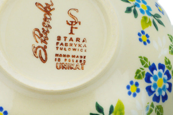 This Forget-me-not Field 6" Bowl with Pedestal was handmade and hand decorated in Boleslawiec, Poland by skilled artisans according to old traditional methods. This Polish stoneware is microwave, dishwasher, freezer, and oven safe up to 480°F. It does not contain lead or cadmium. It is part of the Forget-me-not Field Collection.
