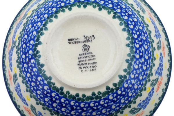 This Fruit Medley 6" Bowl was handmade and hand decorated in Boleslawiec, Poland by skilled artisans according to old traditional methods. This is a Polish pottery Signature Unikat, which means that it has been hand painted with both sponges and brushes and it is signed by the artist who painted it. Unikat pieces are the most intricate works of art. Larger Unikat items take hours of very careful work to finish. This Polish stoneware is microwave, dishwasher, freezer, and oven safe up to 480°F. It does not contain lead or cadmium. It is part of the Fruit Medley Collection.