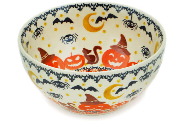 This Halloween Spooky Pumpkin 6" Bowl was handmade and hand decorated in Boleslawiec, Poland by skilled artisans according to old traditional methods. This Polish stoneware is microwave, dishwasher, freezer, and oven safe up to 480°F. It does not contain lead or cadmium. It is part of the Halloween Spooky Pumpkin Collection.