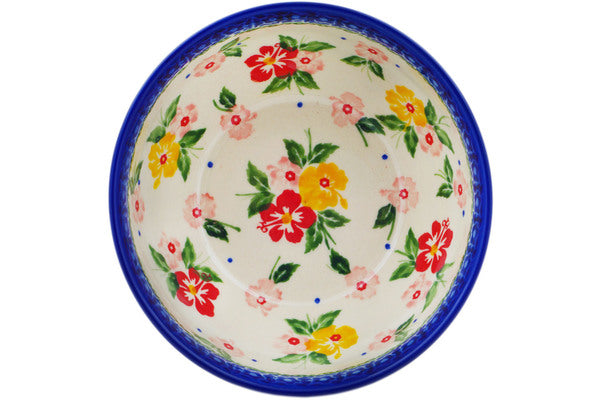 This Hibiscus Splendor 6" Bowl was handmade and hand decorated in Boleslawiec, Poland by skilled artisans according to old traditional methods. This Polish stoneware is microwave, dishwasher, freezer, and oven safe up to 480°F. It does not contain lead or cadmium. It is part of the Hibiscus Splendor Collection.