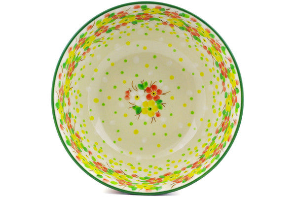 This Blossom Sprinkle 6" Bowl was handmade and hand decorated in Boleslawiec, Poland by skilled artisans according to old traditional methods. This is a Polish pottery Signature Unikat, which means that it has been hand painted with both sponges and brushes and it is signed by the artist who painted it. Unikat pieces are the most intricate works of art. Larger Unikat items take hours of very careful work to finish. This Polish stoneware is microwave, dishwasher, freezer, and oven safe up to 480°F. It does not contain lead or cadmium. It is part of the Blossom Sprinkle Collection.