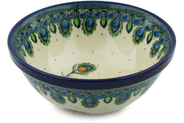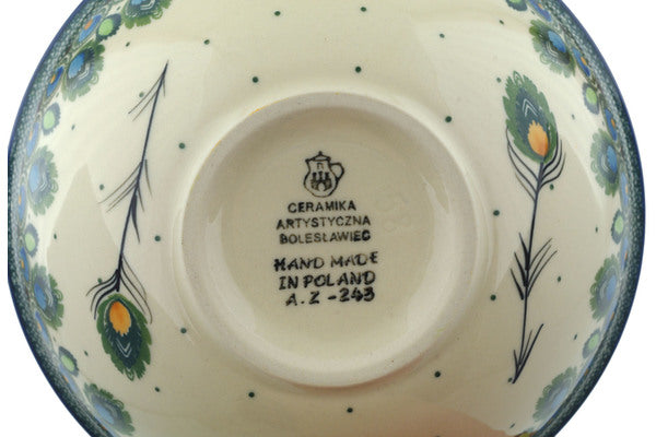 This Peacock Feather 6" Bowl was handmade and hand decorated in Boleslawiec, Poland by skilled artisans according to old traditional methods. This Polish stoneware is microwave, dishwasher, freezer, and oven safe up to 480°F. It does not contain lead or cadmium. It is part of the Peacock Feather Collection.