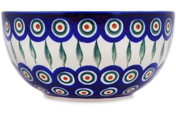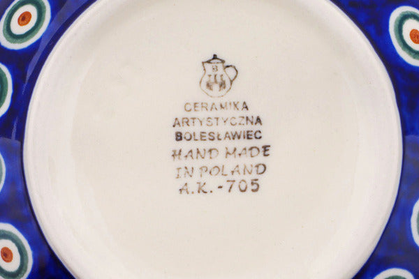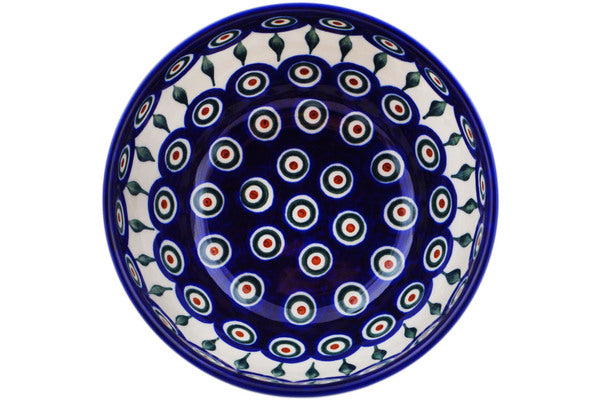 This Peacock Leaves 6" Bowl was handmade and hand decorated in Boleslawiec, Poland by skilled artisans according to old traditional methods. This Polish stoneware is microwave, dishwasher, freezer, and oven safe up to 480°F. It does not contain lead or cadmium. It is part of the Peacock Leaves Collection.
