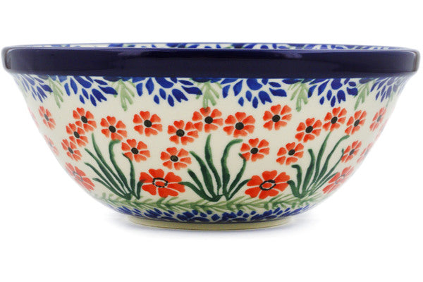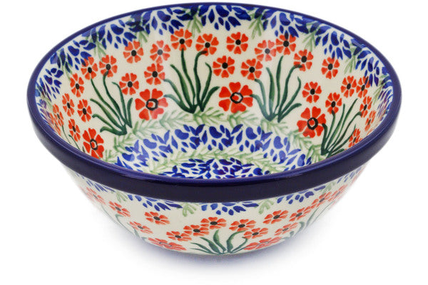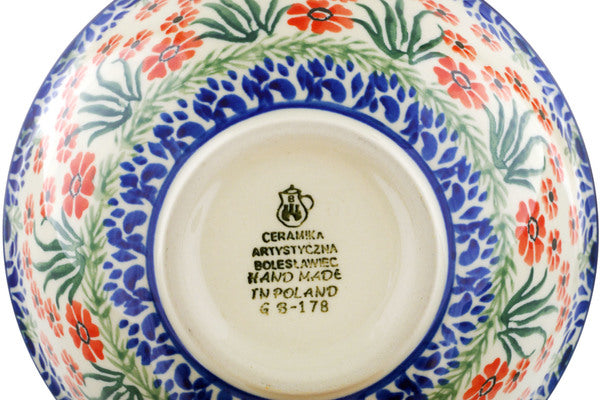 This Red April Showers 6" Bowl was handmade and hand decorated in Boleslawiec, Poland by skilled artisans according to old traditional methods. This Polish stoneware is microwave, dishwasher, freezer, and oven safe up to 480°F. It does not contain lead or cadmium. It is part of the Red April Showers Collection.