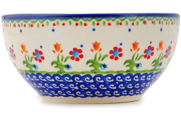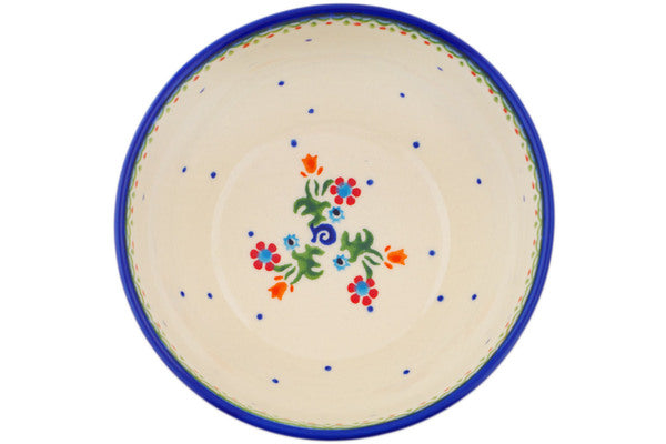This Spring Flowers 6" Bowl was handmade and hand decorated in Boleslawiec, Poland by skilled artisans according to old traditional methods. This Polish stoneware is microwave, dishwasher, freezer, and oven safe up to 480°F. It does not contain lead or cadmium. It is part of the Spring Flowers Collection.