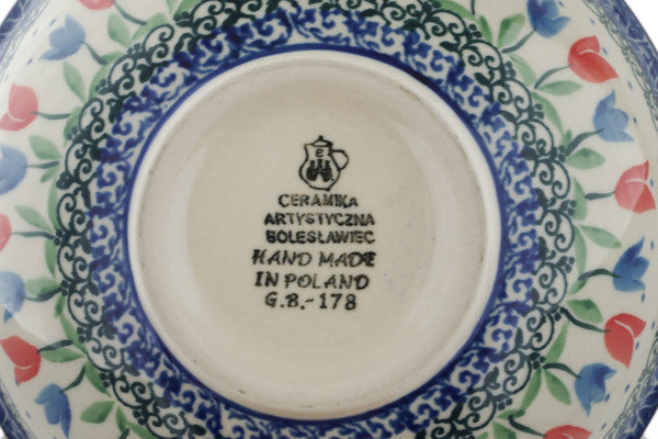 This Tulip Fever 6" Bowl was handmade and hand decorated in Boleslawiec, Poland by skilled artisans according to old traditional methods. This Polish stoneware is microwave, dishwasher, freezer, and oven safe up to 480°F. It does not contain lead or cadmium. It is part of the Tulip Fever Collection.