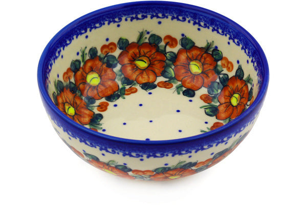 This Autumn Pansies 7" Bowl was handmade and hand decorated in Boleslawiec, Poland by skilled artisans according to old traditional methods. This is a Polish pottery Signature Unikat, which means that it has been hand painted with both sponges and brushes and it is signed by the artist who painted it. Unikat pieces are the most intricate works of art. Larger Unikat items take hours of very careful work to finish. This Polish stoneware is microwave, dishwasher, freezer, and oven safe up to 480°F. It does not contain lead or cadmium. It is part of the Autumn Pansies Collection.