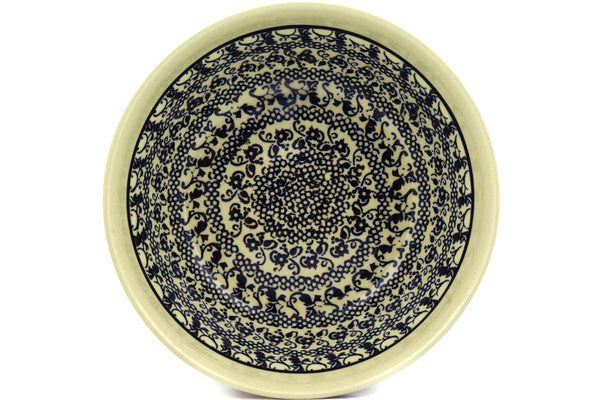 This Black Lace 7" Bowl was handmade and hand decorated in Boleslawiec, Poland by skilled artisans according to old traditional methods. This Polish stoneware is microwave, dishwasher, freezer, and oven safe up to 480°F. It does not contain lead or cadmium. It is part of the Black Lace Collection.