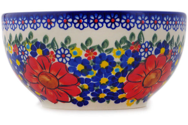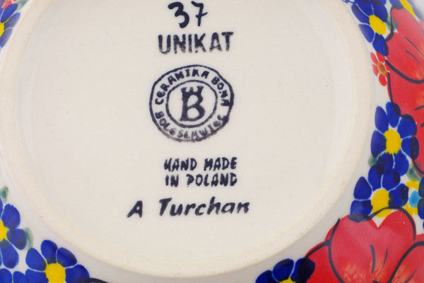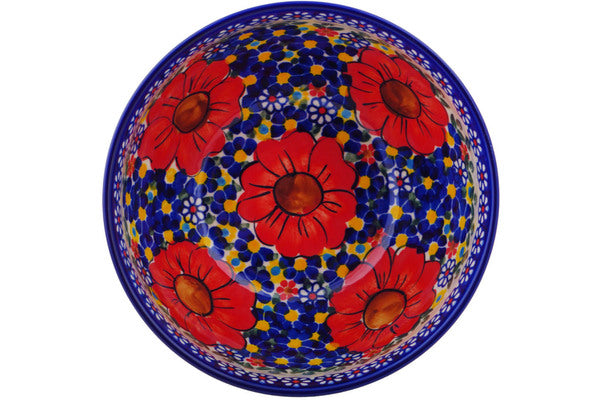 This Bold Sights 7" Bowl was handmade and hand decorated in Boleslawiec, Poland by skilled artisans according to old traditional methods. This is a Polish pottery Signature Unikat, which means that it has been hand painted with both sponges and brushes and it is signed by the artist who painted it. Unikat pieces are the most intricate works of art. Larger Unikat items take hours of very careful work to finish. This Polish stoneware is microwave, dishwasher, freezer, and oven safe up to 480°F. It does not contain lead or cadmium. It is part of the Bold Sights Collection.