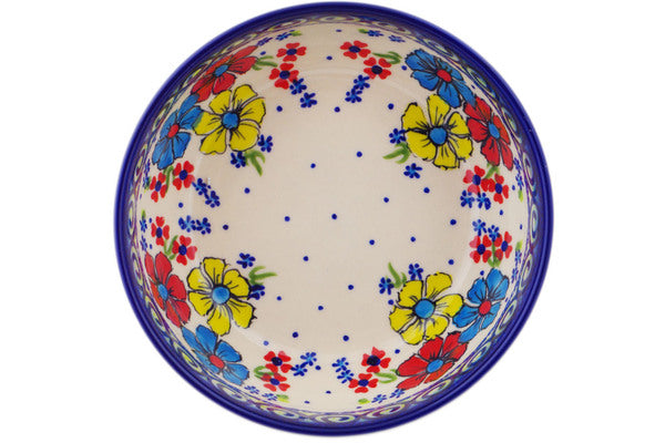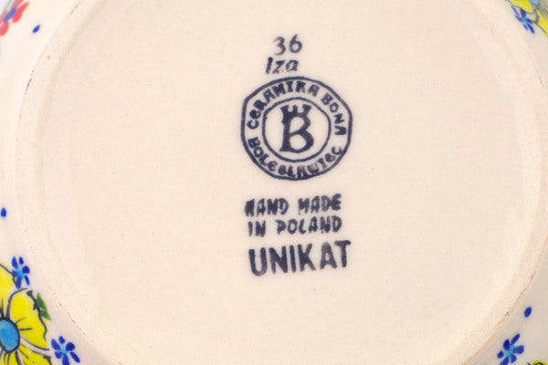 This Country Three 7" Bowl was handmade and hand decorated in Boleslawiec, Poland by skilled artisans according to old traditional methods. This is a Polish pottery Signature Unikat, which means that it has been hand painted with both sponges and brushes and it is signed by the artist who painted it. Unikat pieces are the most intricate works of art. Larger Unikat items take hours of very careful work to finish. This Polish stoneware is microwave, dishwasher, freezer, and oven safe up to 480°F. It does not contain lead or cadmium. It is part of the Country Three Collection.