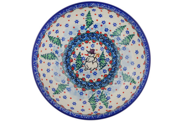 This Dancing Snowman 7" Bowl was handmade and hand decorated in Boleslawiec, Poland by skilled artisans according to old traditional methods. This is a Polish pottery Signature Unikat, which means that it has been hand painted with both sponges and brushes and it is signed by the artist who painted it. Unikat pieces are the most intricate works of art. Larger Unikat items take hours of very careful work to finish. This Polish stoneware is microwave, dishwasher, freezer, and oven safe up to 480°F. It does not contain lead or cadmium. It is part of the Dancing Snowman Collection.