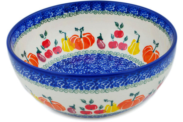 This Fresh Vegetable Garden 7" Bowl was handmade and hand decorated in Boleslawiec, Poland by skilled artisans according to old traditional methods. This Polish stoneware is microwave, dishwasher, freezer, and oven safe up to 480°F. It does not contain lead or cadmium. It is part of the Fresh Vegetable Garden Collection.