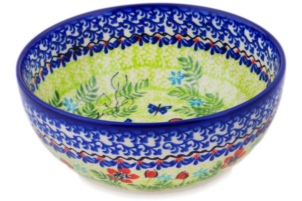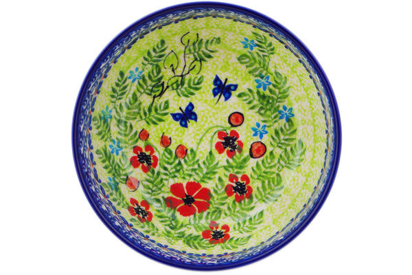 This Metamorphosis 7" Bowl was handmade and hand decorated in Boleslawiec, Poland by skilled artisans according to old traditional methods. This Polish stoneware is microwave, dishwasher, freezer, and oven safe up to 480°F. It does not contain lead or cadmium. It is part of the Metamorphosis Collection.