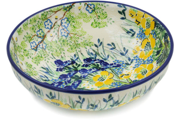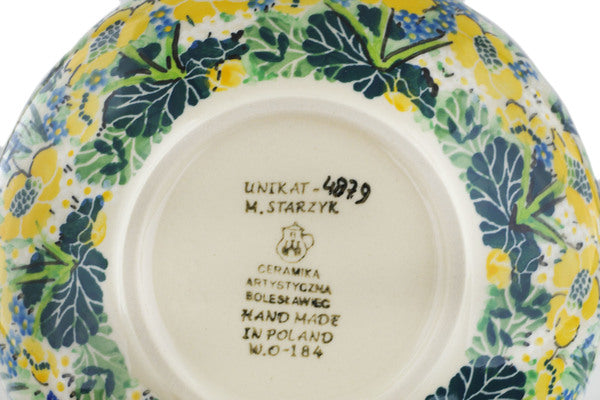 This Peaceful Garden 7" Bowl was handmade and hand decorated in Boleslawiec, Poland by skilled artisans according to old traditional methods. This is a Polish pottery Signature Unikat, which means that it has been hand painted with both sponges and brushes and it is signed by the artist who painted it. Unikat pieces are the most intricate works of art. Larger Unikat items take hours of very careful work to finish. This Polish stoneware is microwave, dishwasher, freezer, and oven safe up to 480°F. It does not contain lead or cadmium. It is part of the Peaceful Garden Collection.