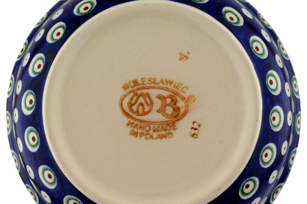 This Peacock Eyes 7" Bowl was handmade and hand decorated in Boleslawiec, Poland by skilled artisans according to old traditional methods. This Polish stoneware is microwave, dishwasher, freezer, and oven safe up to 480°F. It does not contain lead or cadmium. It is part of the Peacock Eyes Collection.
