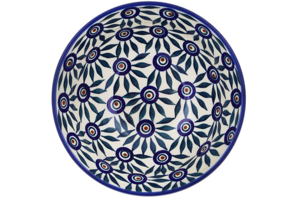 This Peacock Train 7" Bowl was handmade and hand decorated in Boleslawiec, Poland by skilled artisans according to old traditional methods. This is a Polish pottery Signature Unikat, which means that it has been hand painted with both sponges and brushes and it is signed by the artist who painted it. Unikat pieces are the most intricate works of art. Larger Unikat items take hours of very careful work to finish. This Polish stoneware is microwave, dishwasher, freezer, and oven safe up to 480°F. It does not contain lead or cadmium. It is part of the Peacock Train Collection.