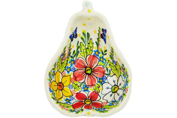 This Retro Garden 7" Pear Shaped Bowl was handmade and hand decorated in Boleslawiec, Poland by skilled artisans according to old traditional methods. This is a Polish pottery Signature Unikat, which means that it has been hand painted with both sponges and brushes and it is signed by the artist who painted it. Unikat pieces are the most intricate works of art. Larger Unikat items take hours of very careful work to finish. This Polish stoneware is microwave, dishwasher, freezer, and oven safe up to 480°F. It does not contain lead or cadmium. It is part of the Retro Garden Collection.