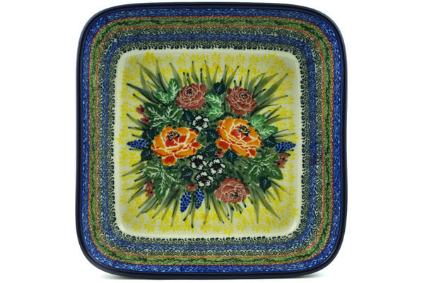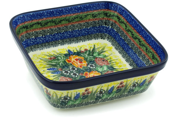 This Copper Rose Meadow 8" Bowl was handmade and hand decorated in Boleslawiec, Poland by skilled artisans according to old traditional methods. This is a Polish pottery Signature Unikat, which means that it has been hand painted with both sponges and brushes and it is signed by the artist who painted it. Unikat pieces are the most intricate works of art. Larger Unikat items take hours of very careful work to finish. This Polish stoneware is microwave, dishwasher, freezer, and oven safe up to 480°F. It does not contain lead or cadmium. It is part of the Copper Rose Meadow Collection.