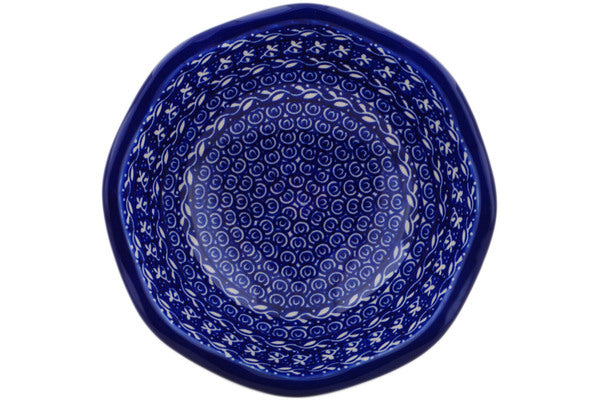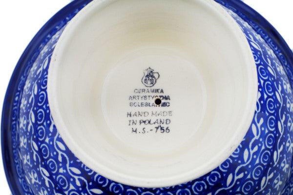This Ocean Waves 8" Bowl with Pedestal was handmade and hand decorated in Boleslawiec, Poland by skilled artisans according to old traditional methods. This Polish stoneware is microwave, dishwasher, freezer, and oven safe up to 480°F. It does not contain lead or cadmium. It is part of the Ocean Waves Collection.