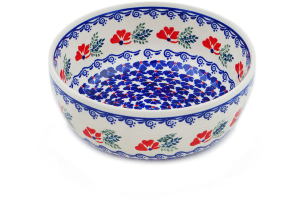 This Rain Of Field Poppies 8" Bowl was handmade and hand decorated in Boleslawiec, Poland by skilled artisans according to old traditional methods. This Polish stoneware is microwave, dishwasher, freezer, and oven safe up to 480°F. It does not contain lead or cadmium. It is part of the Rain Of Field Poppies Collection.