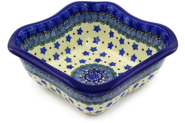 This Star Flower 8" Bowl was handmade and hand decorated in Boleslawiec, Poland by skilled artisans according to old traditional methods. This Polish stoneware is microwave, dishwasher, freezer, and oven safe up to 480°F. It does not contain lead or cadmium. It is part of the Star Flower Collection.