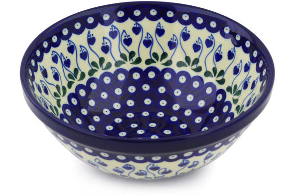 This Bleeding Heart Peacock 9" Bowl was handmade and hand decorated in Boleslawiec, Poland by skilled artisans according to old traditional methods. This Polish stoneware is microwave, dishwasher, freezer, and oven safe up to 480°F. It does not contain lead or cadmium. It is part of the Bleeding Heart Peacock Collection.