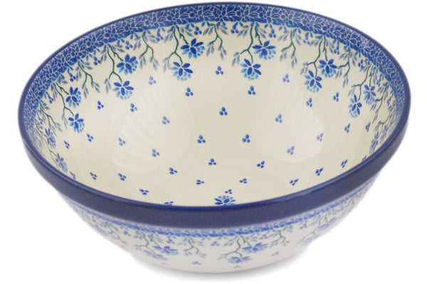 This Blue Grapevine 9" Bowl was handmade and hand decorated in Boleslawiec, Poland by skilled artisans according to old traditional methods. This Polish stoneware is microwave, dishwasher, freezer, and oven safe up to 480°F. It does not contain lead or cadmium. It is part of the Blue Grapevine Collection.