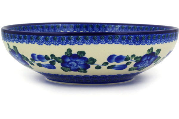This Blue Poppies 9" Bowl was handmade and hand decorated in Boleslawiec, Poland by skilled artisans according to old traditional methods. This Polish stoneware is microwave, dishwasher, freezer, and oven safe up to 480°F. It does not contain lead or cadmium. It is part of the Blue Poppies Collection.