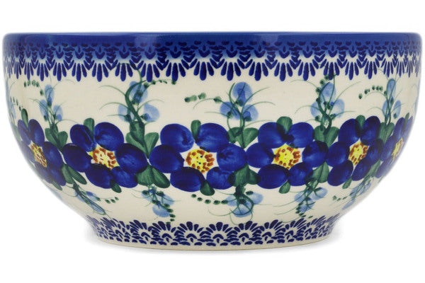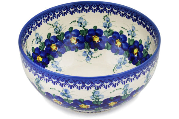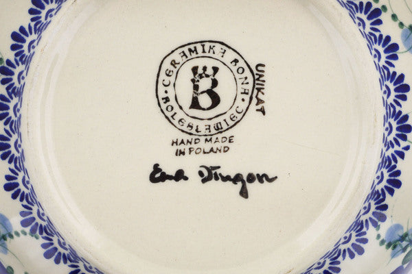 This Blue Wildflower 9" Bowl was handmade and hand decorated in Boleslawiec, Poland by skilled artisans according to old traditional methods. This is a Polish pottery Signature Unikat, which means that it has been hand painted with both sponges and brushes and it is signed by the artist who painted it. Unikat pieces are the most intricate works of art. Larger Unikat items take hours of very careful work to finish. This Polish stoneware is microwave, dishwasher, freezer, and oven safe up to 480°F. It does not contain lead or cadmium. It is part of the Blue Wildflower Collection.