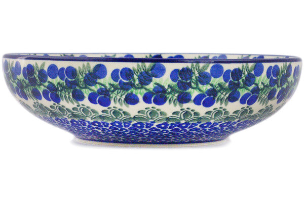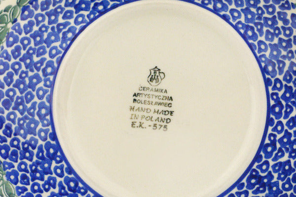 This Blueberry Fields Forever 9" Bowl was handmade and hand decorated in Boleslawiec, Poland by skilled artisans according to old traditional methods. This Polish stoneware is microwave, dishwasher, freezer, and oven safe up to 480°F. It does not contain lead or cadmium. It is part of the Blueberry Fields Forever Collection.