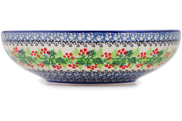 This Holly Berry Wreath 9" Bowl was handmade and hand decorated in Boleslawiec, Poland by skilled artisans according to old traditional methods. This Polish stoneware is microwave, dishwasher, freezer, and oven safe up to 480°F. It does not contain lead or cadmium. It is part of the Holly Berry Wreath Collection.