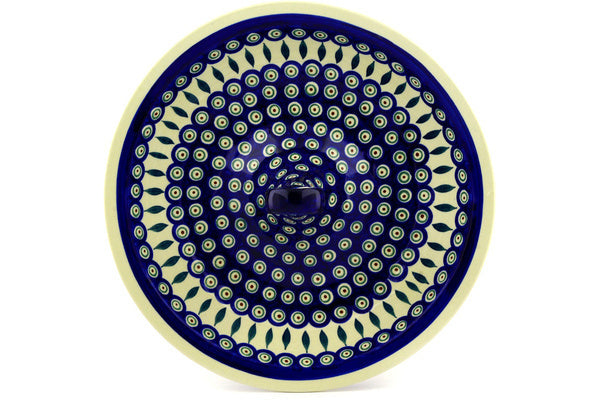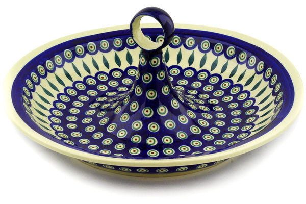 This Peacock Leaves 14" Bowl with Handles was handmade and hand decorated in Boleslawiec, Poland by skilled artisans according to old traditional methods. This Polish stoneware is microwave, dishwasher, freezer, and oven safe up to 480°F. It does not contain lead or cadmium. It is part of the Peacock Leaves Collection.
