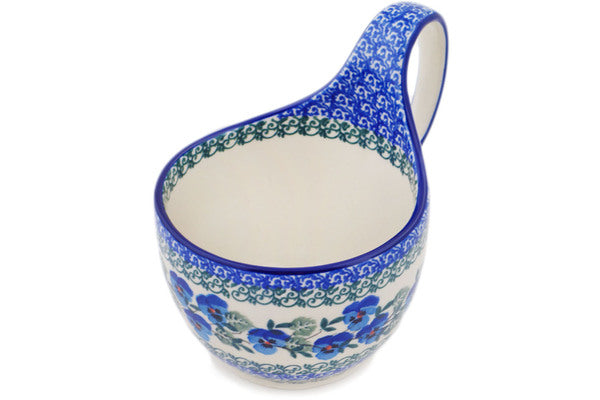 Bowl with Loop-Handle 16 oz Blue Pansy Theme