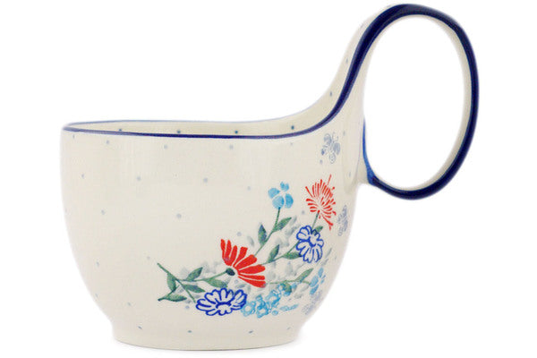 This Cow Field 16 oz Bowl with Loop-Handle was handmade and hand decorated in Boleslawiec, Poland by skilled artisans according to old traditional methods. This Polish stoneware is microwave, dishwasher, freezer, and oven safe up to 480°F. It does not contain lead or cadmium. It is part of the Cow Field Collection.