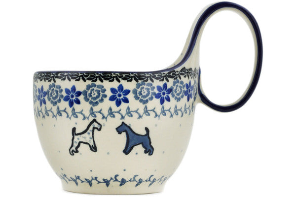 This Schnauzer Sweetness 16 oz Bowl with Loop-Handle was handmade and hand decorated in Boleslawiec, Poland by skilled artisans according to old traditional methods. This Polish stoneware is microwave, dishwasher, freezer, and oven safe up to 480°F. It does not contain lead or cadmium. It is part of the Schnauzer Sweetness Collection.