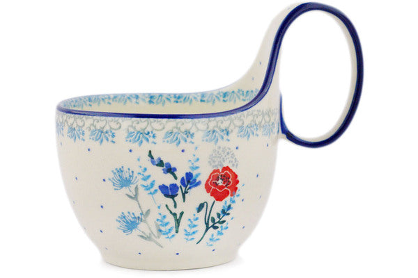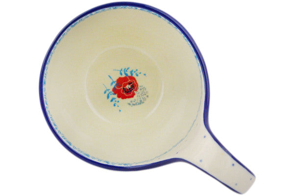 This Spring Sprouts 16 oz Bowl with Loop-Handle was handmade and hand decorated in Boleslawiec, Poland by skilled artisans according to old traditional methods. This Polish stoneware is microwave, dishwasher, freezer, and oven safe up to 480°F. It does not contain lead or cadmium. It is part of the Spring Sprouts Collection.