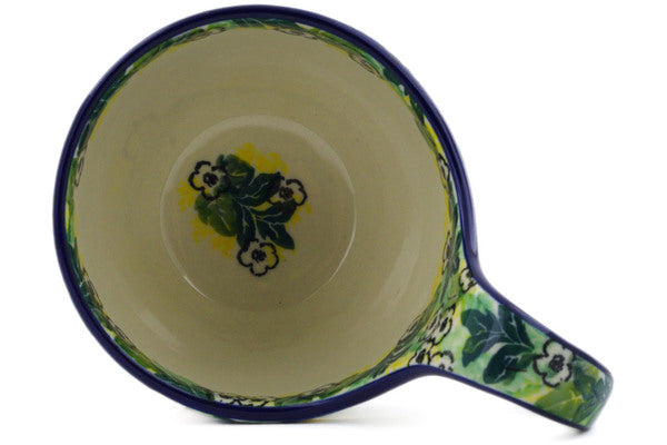 This Breathtaking 16 oz Bowl with Loop-Handle was handmade and hand decorated in Boleslawiec, Poland by skilled artisans according to old traditional methods. This is a Polish pottery Signature Unikat, which means that it has been hand painted with both sponges and brushes and it is signed by the artist who painted it. Unikat pieces are the most intricate works of art. Larger Unikat items take hours of very careful work to finish. This Polish stoneware is microwave, dishwasher, freezer, and oven safe up to 480°F. It does not contain lead or cadmium. It is part of the Breathtaking Collection.