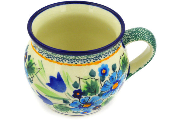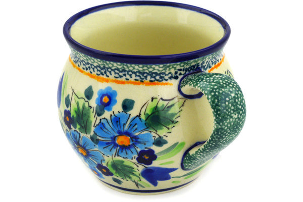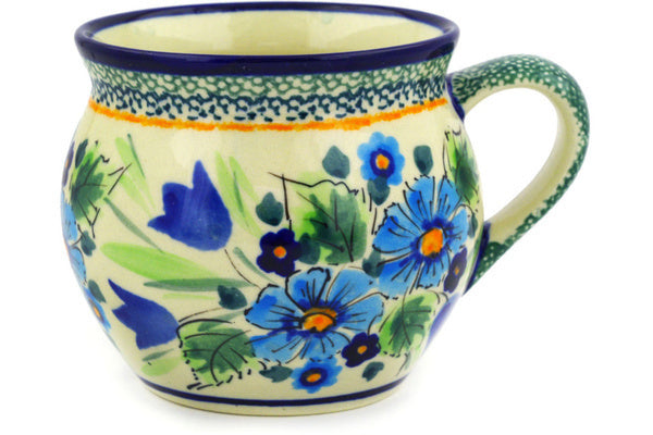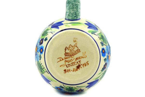 This Evangeline 10 oz Bubble Mug was handmade and hand decorated in Boleslawiec, Poland by skilled artisans according to old traditional methods. This is a Polish pottery Signature Unikat, which means that it has been hand painted with both sponges and brushes and it is signed by the artist who painted it. Unikat pieces are the most intricate works of art. Larger Unikat items take hours of very careful work to finish. This Polish stoneware is microwave, dishwasher, freezer, and oven safe up to 480°F. It does not contain lead or cadmium. It is part of the Evangeline Collection.