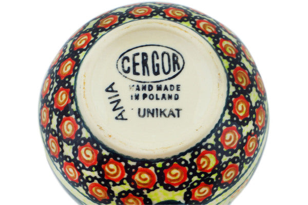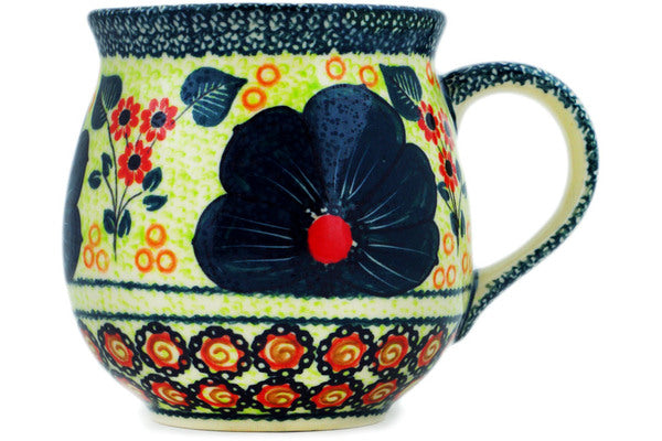 This Perfect Day 17 oz Bubble Mug was handmade and hand decorated in Boleslawiec, Poland by skilled artisans according to old traditional methods. This is a Polish pottery Signature Unikat, which means that it has been hand painted with both sponges and brushes and it is signed by the artist who painted it. Unikat pieces are the most intricate works of art. Larger Unikat items take hours of very careful work to finish. This Polish stoneware is microwave, dishwasher, freezer, and oven safe up to 480°F. It does not contain lead or cadmium. It is part of the Perfect Day Collection.