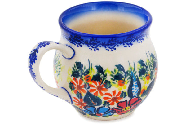 This Bold Poppies 12 oz Bubble Mug was handmade and hand decorated in Boleslawiec, Poland by skilled artisans according to old traditional methods. This is a Polish pottery Signature Unikat, which means that it has been hand painted with both sponges and brushes and it is signed by the artist who painted it. Unikat pieces are the most intricate works of art. Larger Unikat items take hours of very careful work to finish. This Polish stoneware is microwave, dishwasher, freezer, and oven safe up to 480°F. It does not contain lead or cadmium. It is part of the Bold Poppies Collection.