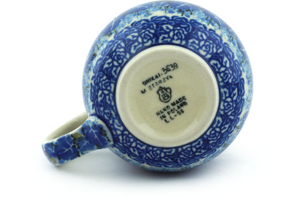 This Deep Winter 12oz Bubble Mug was handmade and hand decorated in Boleslawiec, Poland by skilled artisans according to old traditional methods. This is a Polish pottery Signature Unikat, which means that it has been hand painted with both sponges and brushes and it is signed by the artist who painted it. Unikat pieces are the most intricate works of art. Larger Unikat items take hours of very careful work to finish. This Polish stoneware is microwave, dishwasher, freezer, and oven safe up to 480°F. It does not contain lead or cadmium. It is part of the Deep Winter Collection.