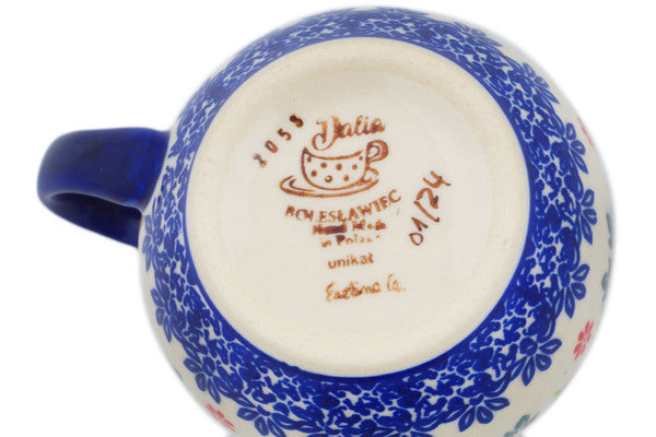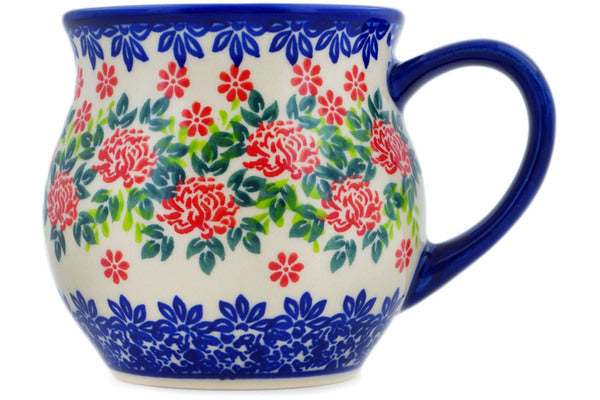 This Feeling Rosey 13 oz Bubble Mug was handmade and hand decorated in Boleslawiec, Poland by skilled artisans according to old traditional methods. This is a Polish pottery Signature Unikat, which means that it has been hand painted with both sponges and brushes and it is signed by the artist who painted it. Unikat pieces are the most intricate works of art. Larger Unikat items take hours of very careful work to finish. This Polish stoneware is microwave, dishwasher, freezer, and oven safe up to 480°F. It does not contain lead or cadmium. It is part of the Feeling Rosey Collection.