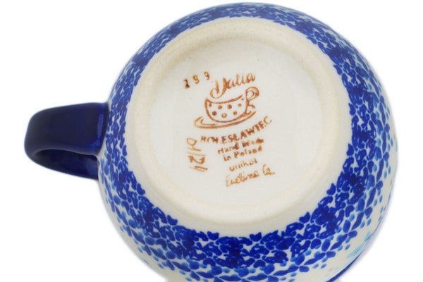 This Garden Party 13 oz Bubble Mug was handmade and hand decorated in Boleslawiec, Poland by skilled artisans according to old traditional methods. This is a Polish pottery Signature Unikat, which means that it has been hand painted with both sponges and brushes and it is signed by the artist who painted it. Unikat pieces are the most intricate works of art. Larger Unikat items take hours of very careful work to finish. This Polish stoneware is microwave, dishwasher, freezer, and oven safe up to 480°F. It does not contain lead or cadmium. It is part of the Garden Party Collection.