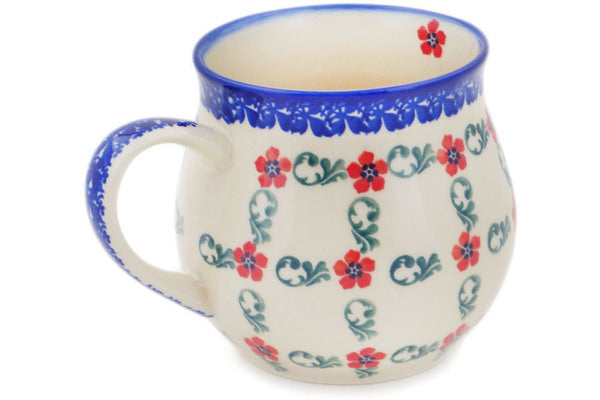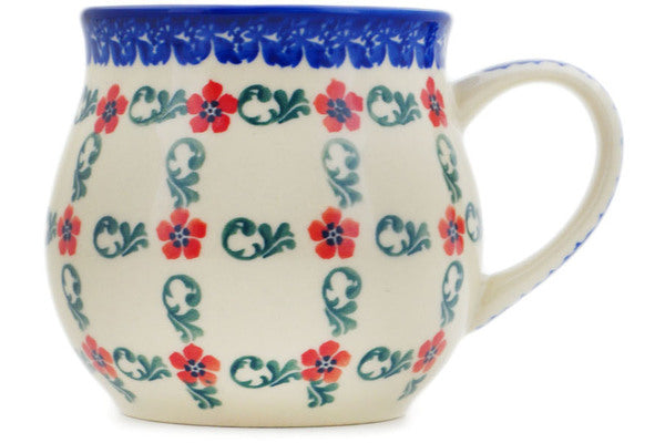 This Red Flower Lattice 19 oz Bubble Mug was handmade and hand decorated in Boleslawiec, Poland by skilled artisans according to old traditional methods. This Polish stoneware is microwave, dishwasher, freezer, and oven safe up to 480°F. It does not contain lead or cadmium. It is part of the Red Flower Lattice Collection.