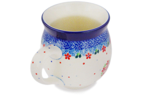 This Beary Sweet 12oz Bubble Mug was handmade and hand decorated in Boleslawiec, Poland by skilled artisans according to old traditional methods. This is a Polish pottery Signature Unikat, which means that it has been hand painted with both sponges and brushes and it is signed by the artist who painted it. Unikat pieces are the most intricate works of art. Larger Unikat items take hours of very careful work to finish. This Polish stoneware is microwave, dishwasher, freezer, and oven safe up to 480°F. It does not contain lead or cadmium. It is part of the Beary Sweet Collection.